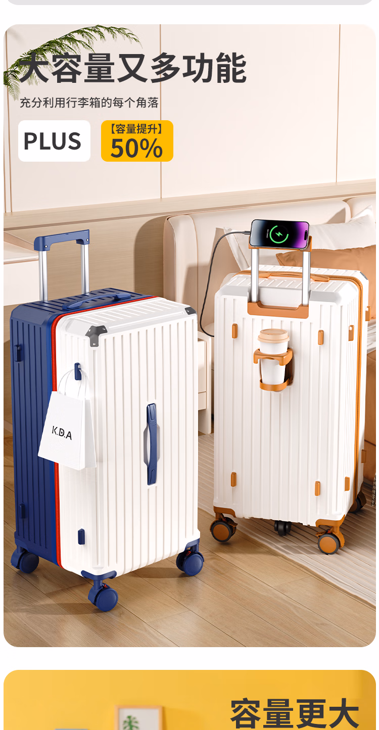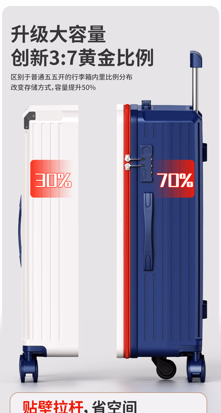 甄芝梦多功能行李箱女学生结实耐用拉杆箱大容量加厚轻便旅行箱密码箱男 冰蓝色【全功能减震五轮】 26英寸 【37开大容量-上学必备】