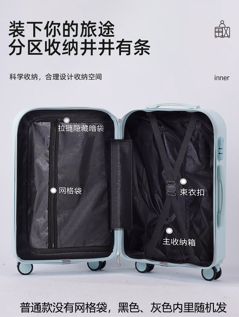 MCHNA KTCC行李箱防爆拉链拉杆箱女结实耐用旅行箱轻音万向轮小型密码箱皮箱 谷物白 20英寸 -可登机