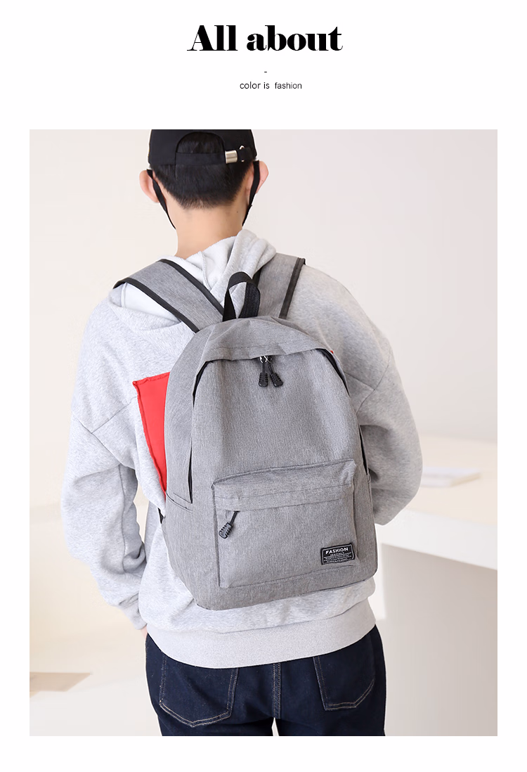 休闲书包男简约双肩包男背包男大容量中学生旅行包 标准款灰色(不能充电听歌)