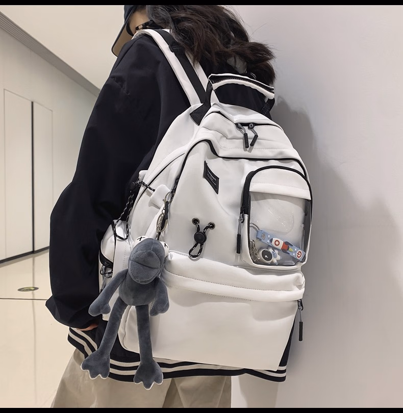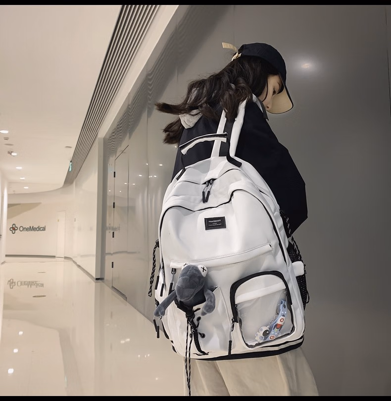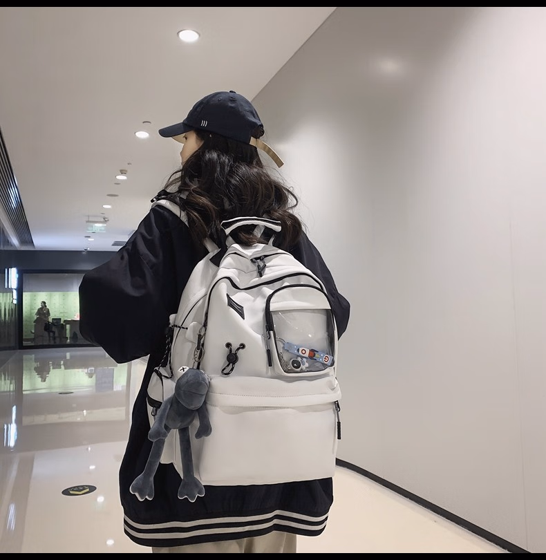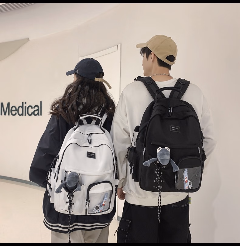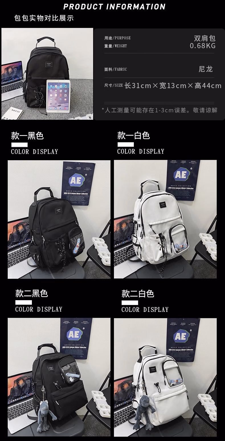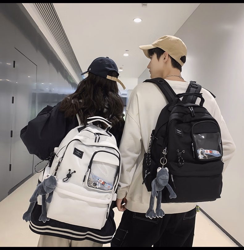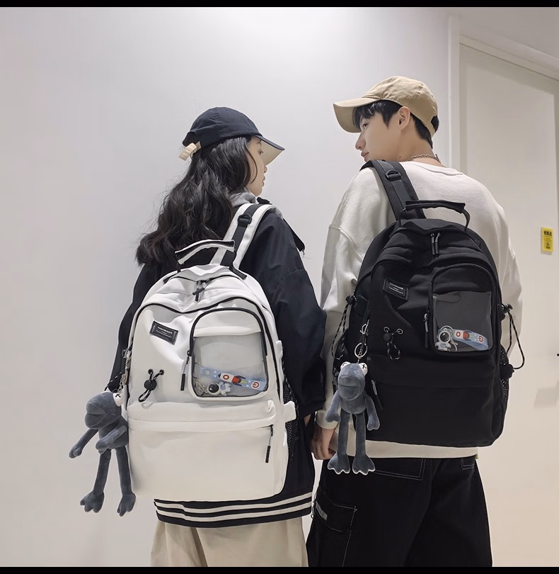 丛林鸟 书包男高中生大学生双肩包女潮流轻便大容量旅行包无印简约背包 款一白色【灰青蛙+太空人】