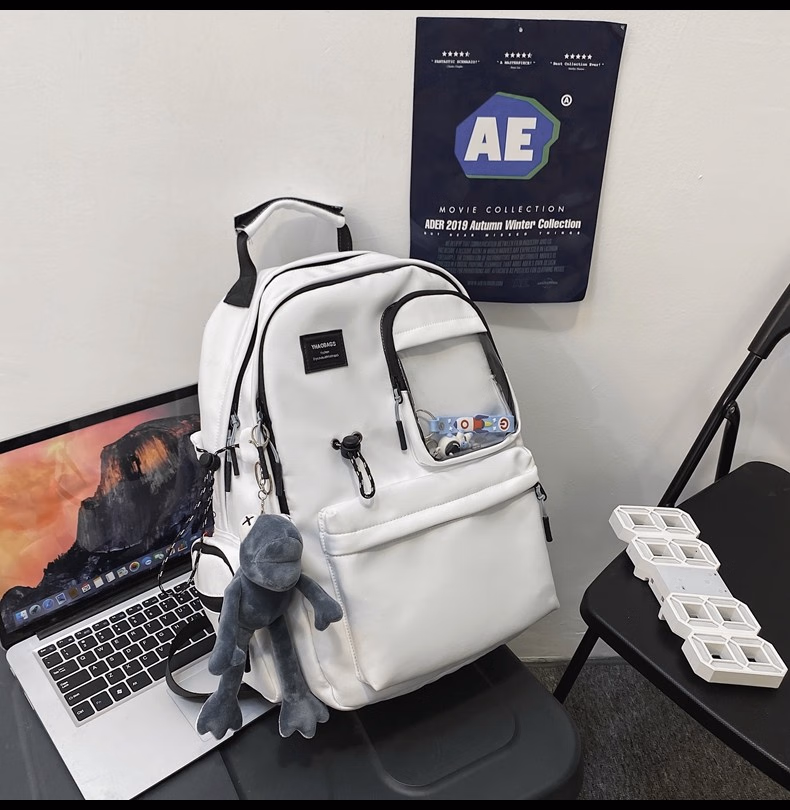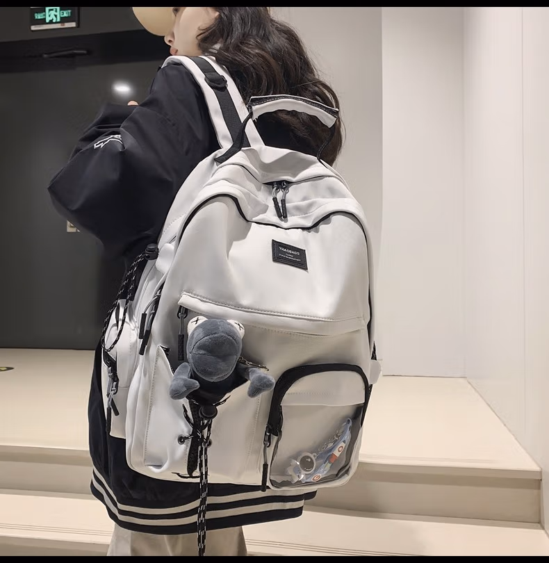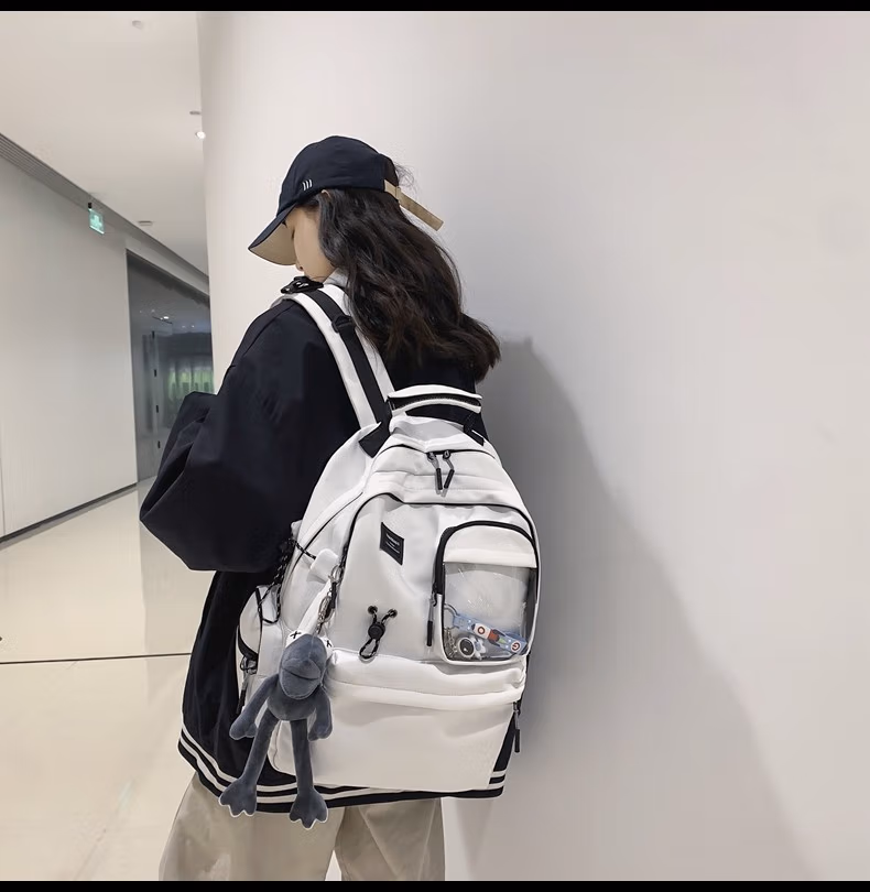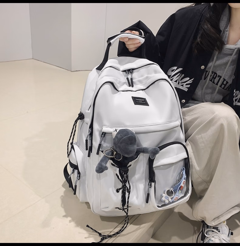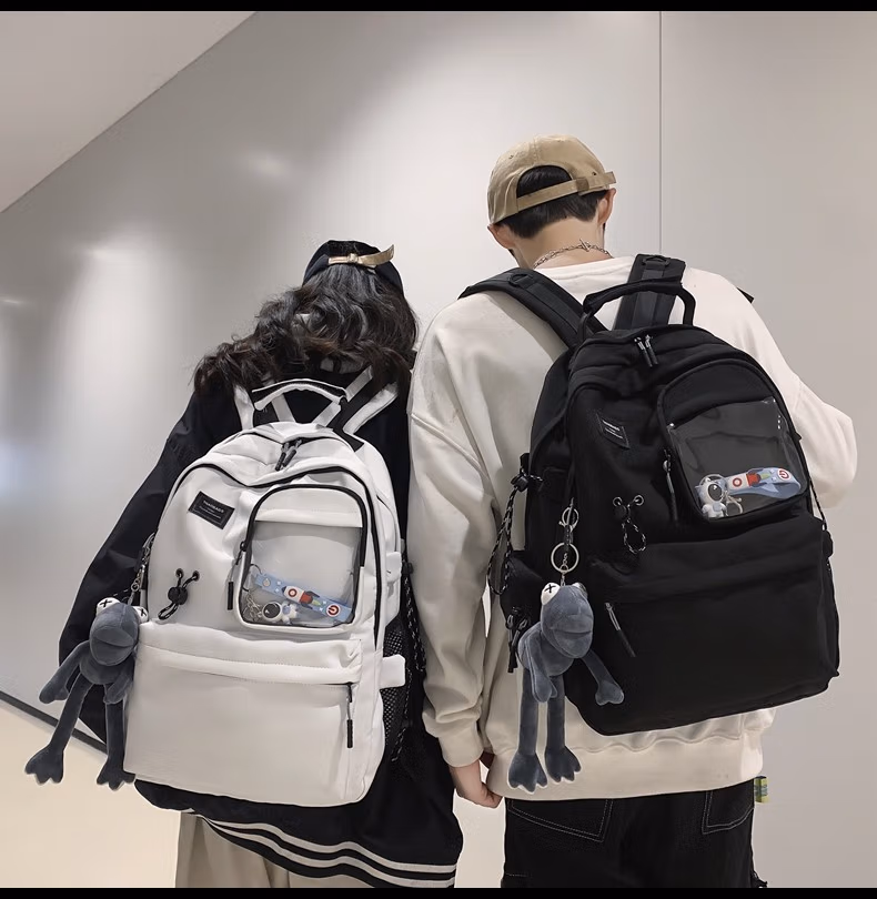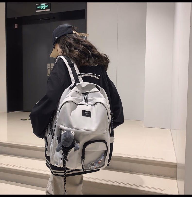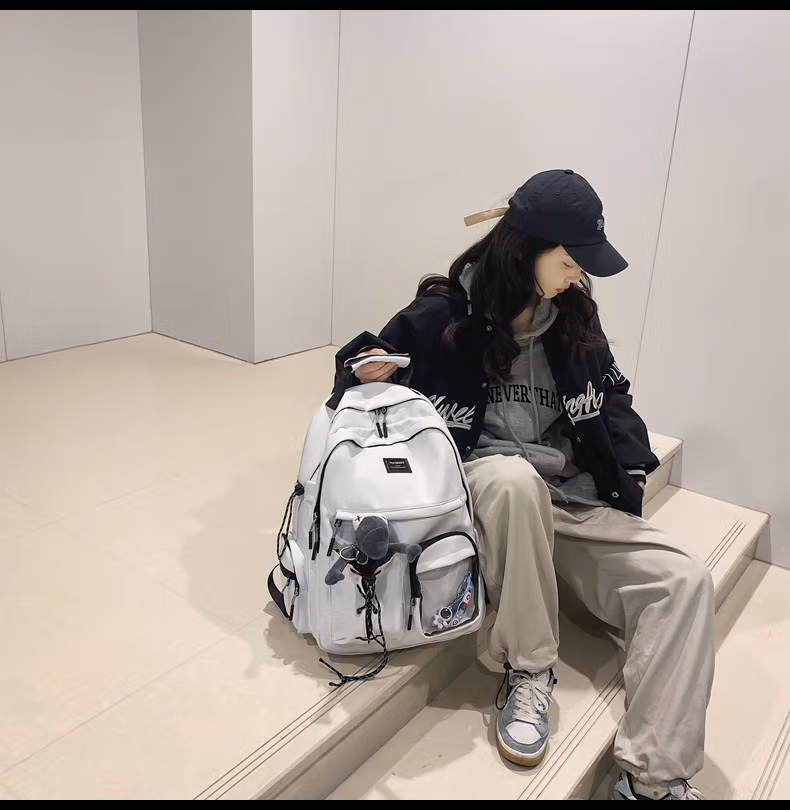 丛林鸟 书包男高中生大学生双肩包女潮流轻便大容量旅行包无印简约背包 款一白色【灰青蛙+太空人】