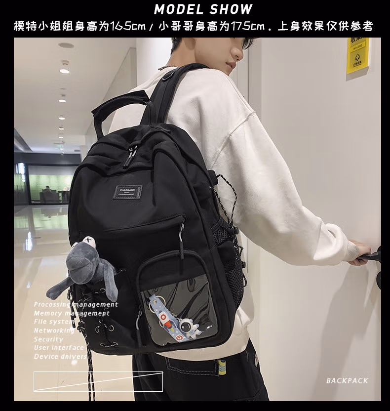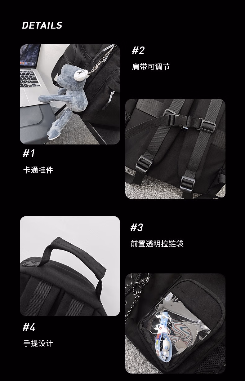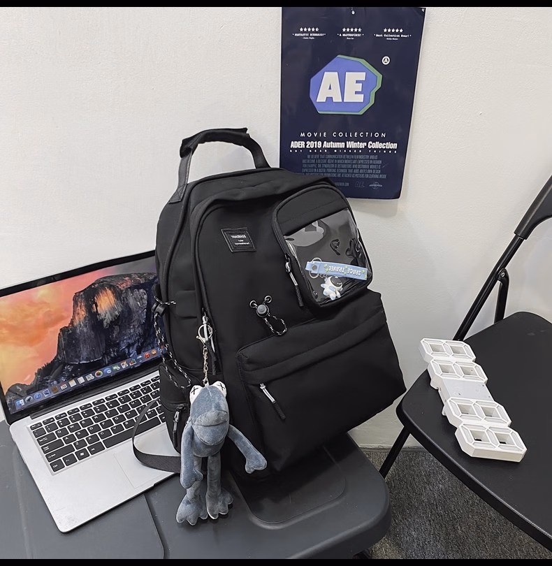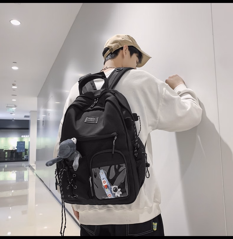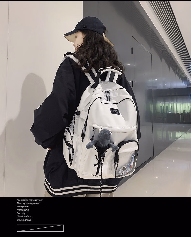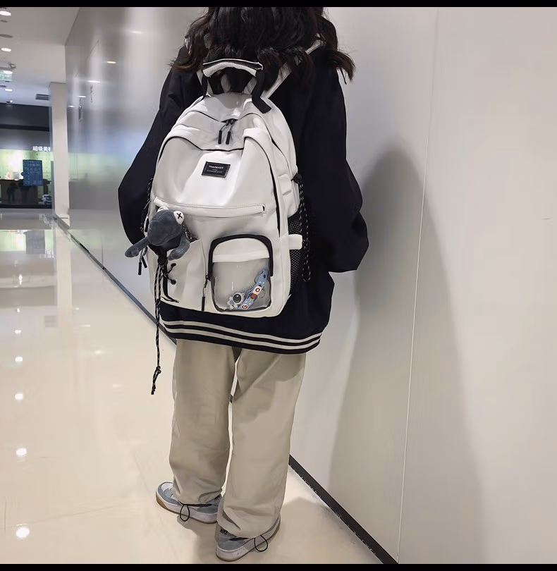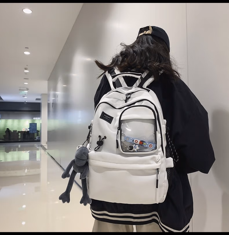 丛林鸟 书包男高中生大学生双肩包女潮流轻便大容量旅行包无印简约背包 款一白色【灰青蛙+太空人】