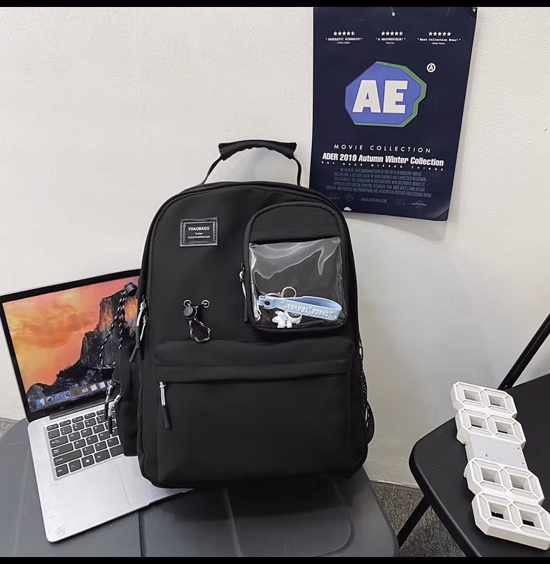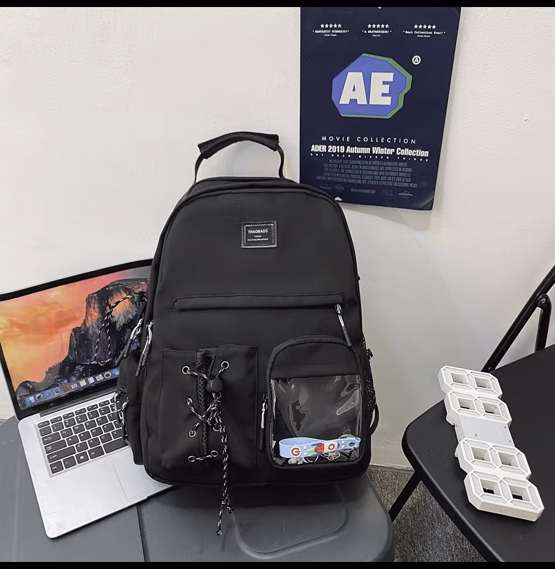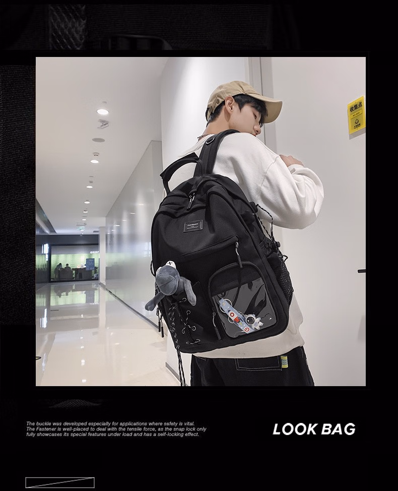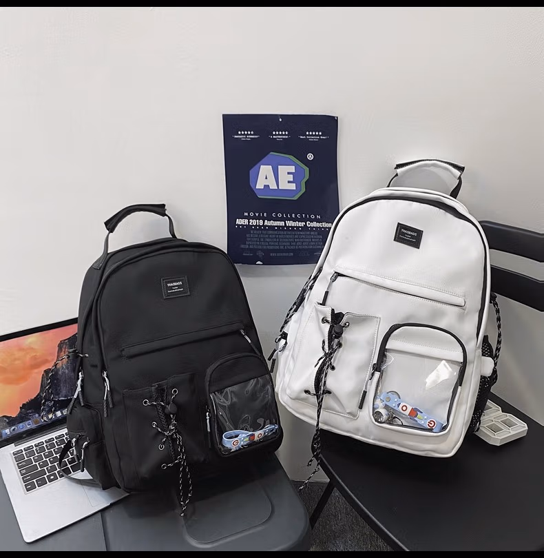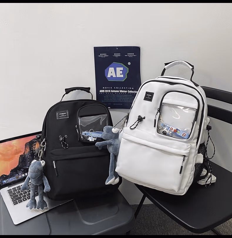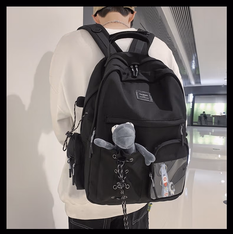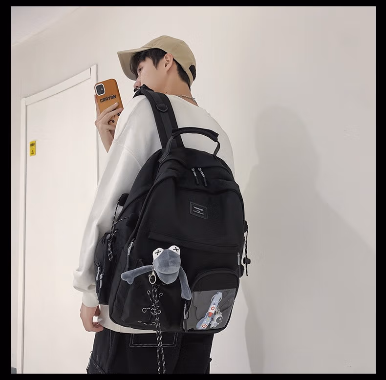 丛林鸟 书包男高中生大学生双肩包女潮流轻便大容量旅行包无印简约背包 款一白色【灰青蛙+太空人】