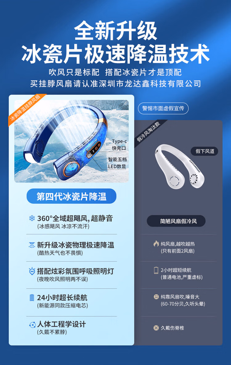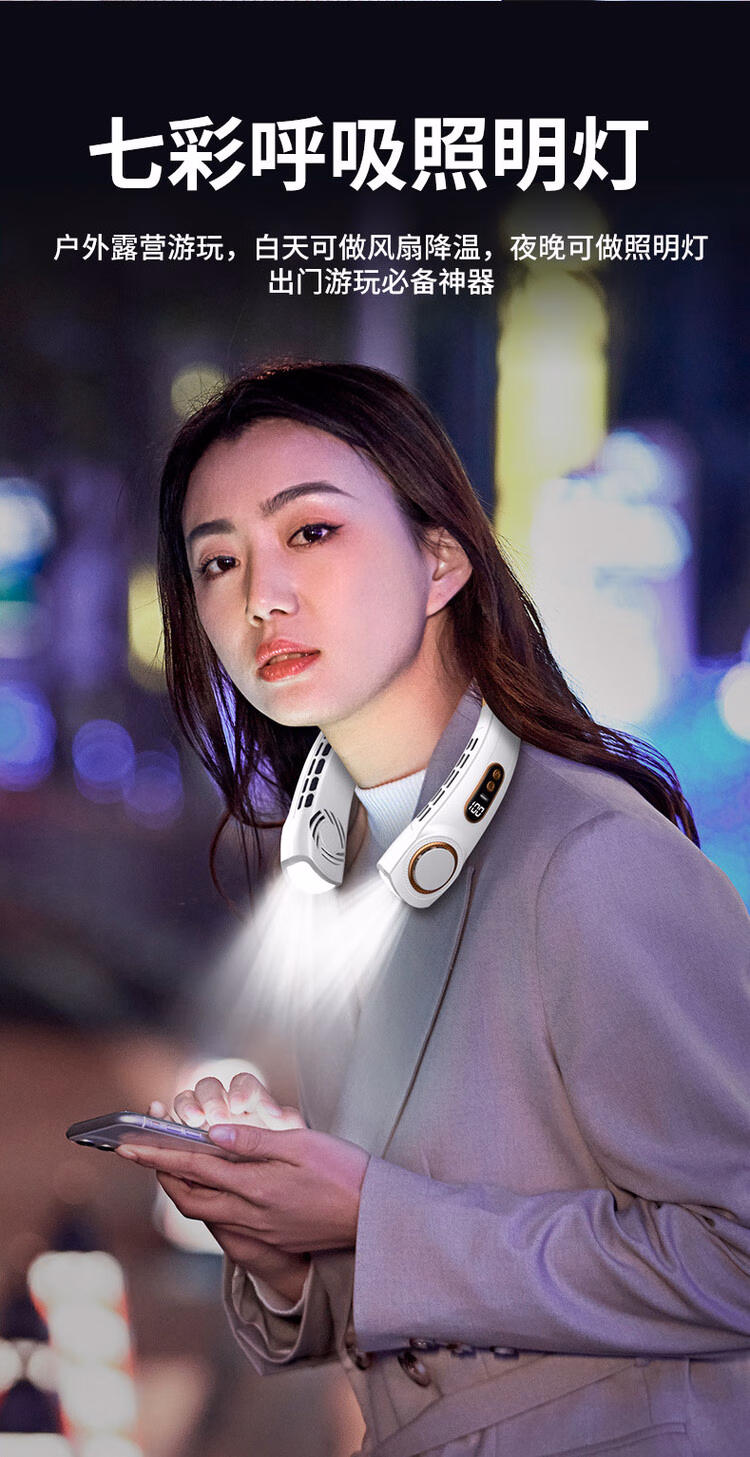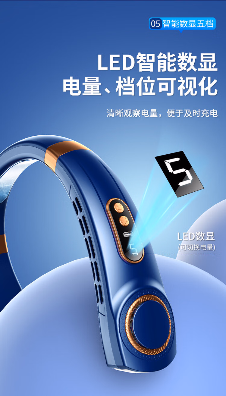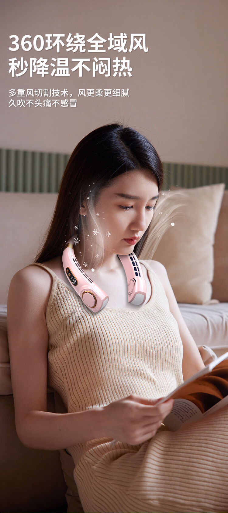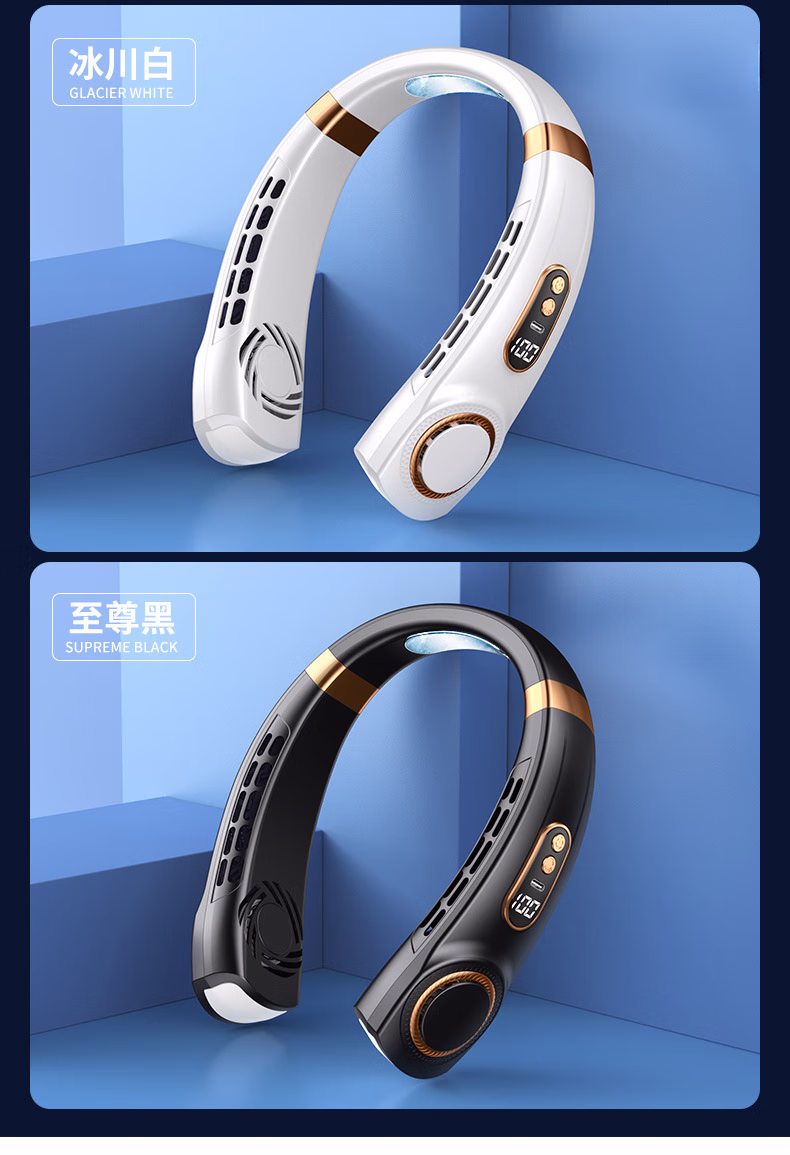 小米粒挂脖风扇2025新款便携静音户外风扇无叶长续航小风扇充电降温神器 至尊黑物理极速降温+冰瓷片+数显